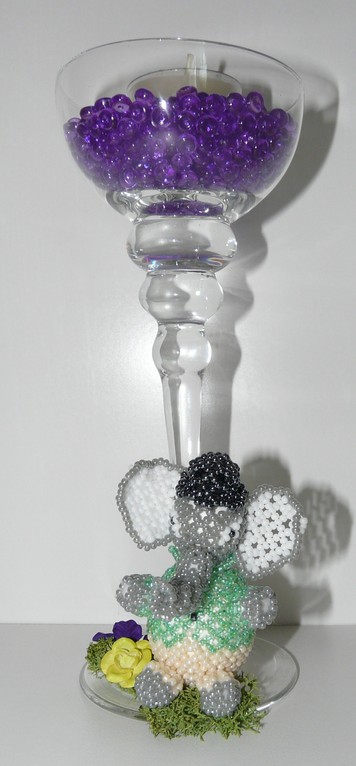 Elefant : Watteei und Wattekugel umnäht mit hochwertigen La Bella - Perlen.