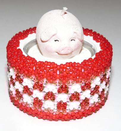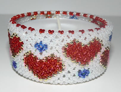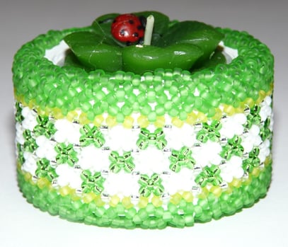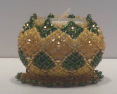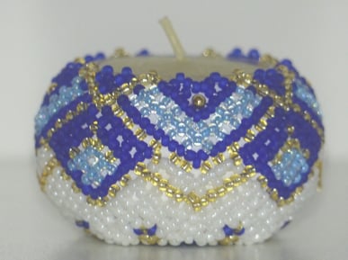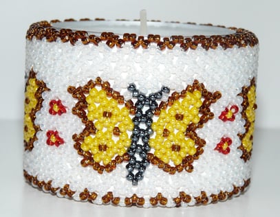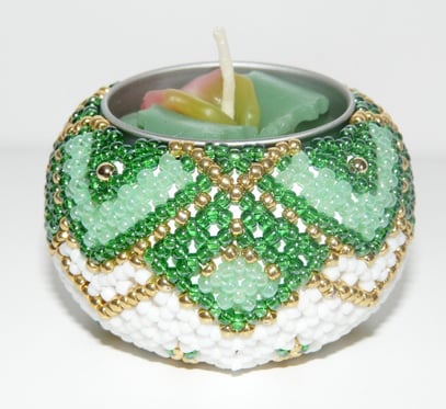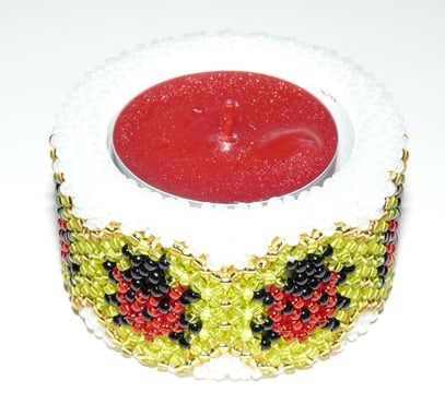 Holzteelicht umnäht mit hochwertigen Rocailleperlen.