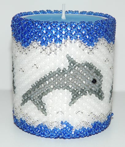 Kunststoffteelicht umnäht mit hochwertigen La Bella - Perlen. Kann auch als Windlicht genutzt