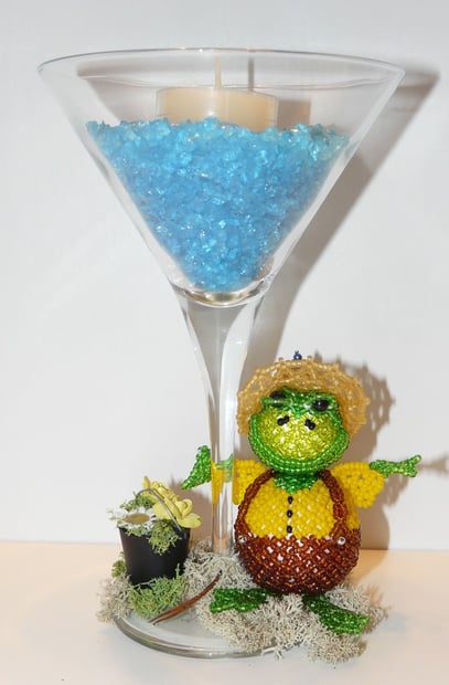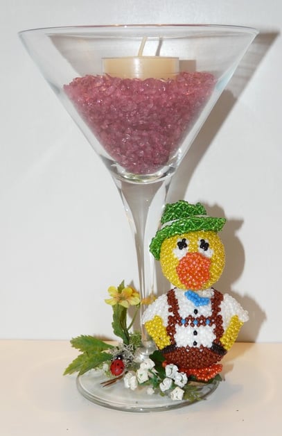 Glas umnäht mit hochwertigen La Bella - Perlen. Farbkombinationen können auf Wunsch und Anfrage eventuell geändert werden. Lieferung erfolgt mit Teelicht.